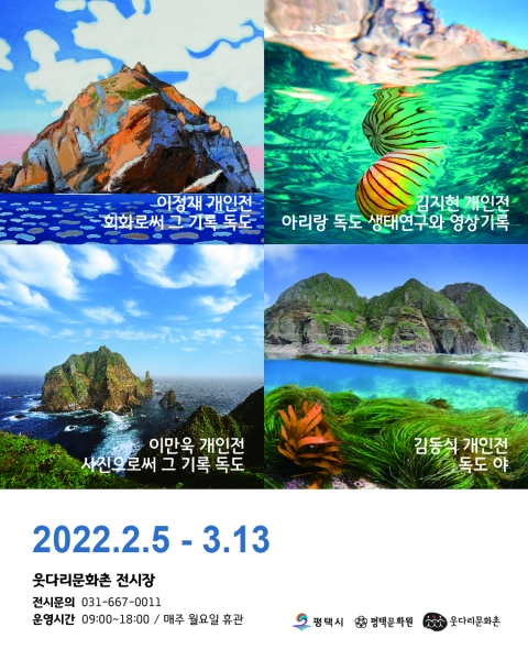 [충청뉴스큐] 평택문화원 웃다리문화촌은 오는 2월 5일부터 3월 13일까지 작가 이정재, 김지현, 이만욱 그리고 김동식 감독을 모시고 회화, 사진, 학술, 다큐멘터리 영상을 통한 다양한 장르의 표현으로 담아낸 ‘4인의 독도 개인전’을 개최한다.