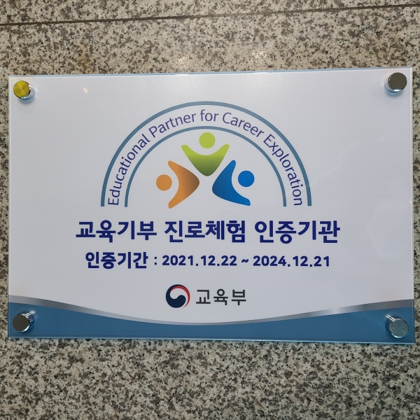 ‘교육기부 진로체험 인증제’는 체험처의 성격과 환경 및 안전성, 프로그램의 우수성 등 3가지 영역을 충족해야 하며 초·중·고 학생에게 무료로 양질의 진로체험 기회를 제공하는 기관을 심사해 교육부가 인증하는 제도이다.