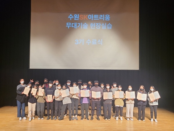 [충청뉴스큐] 수원문화재단은 지난달 28일 수원SK아트리움 소공연장에서 ‘무대기술 현장실습 3기 수료식’을 진행했다.