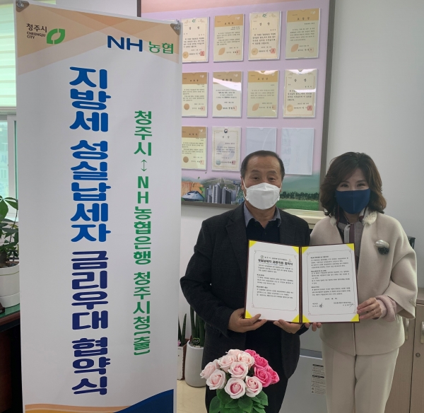시는 지난 9일 지방세를 성실하게 납부한 성실납세자에게 금리우대 혜택을 지원하기 위해 NH농협은행 청주시청 출장소와 협약식을 체결했다.