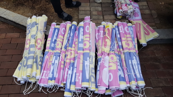현수막은 끈을 포함하고 명함은 100매 단위로 묶어서 매주 화요일 주민등록상 거주지 읍면동에 제출하면 된다.