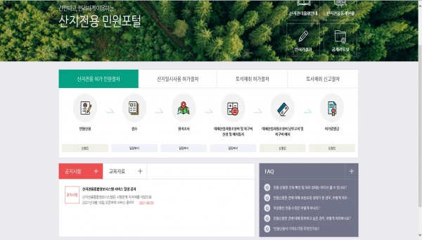 또한 산지전용 등 인허가에 따라 부과하는 대체산림자원조성비를 비전자적으로 징수 관리하면서 많은 행정력이 필요하고 징수율 제고에도 어려움을 겪어왔으나 이번 시스템 구축, 운영을 통해 산지관리 민원 전반을 비대면 온라인으로 처리할 수 있게 됐다.