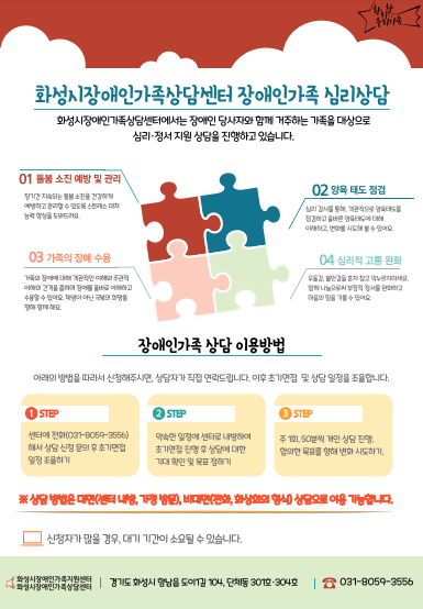 [충청뉴스큐] 화성시장애인가족지원센터가 코로나19 장기화로 돌봄에 어려움을 겪고 있는 장애인가족을 위한 심리상담 서비스를 준비했다.