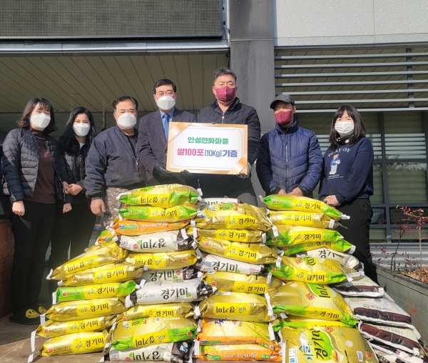 [충청뉴스큐] 안성연화마을은 16일 어려운 이웃을 위해 쌀 10kg 100포를 일죽면사무소에 기증해 주위에 귀감이 되고 있다.