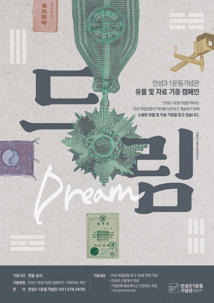 [충청뉴스큐] 안성3.1운동기념관에서는 안성 독립운동의 역사를 보존하고 계승하기 위해 유물 및 자료 기증 캠페인 ‘드림’을 펼친다.