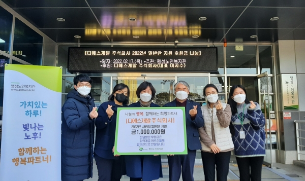 [충청뉴스큐] 평택복지재단 산하 팽성노인복지관은 17일 디에스개발 주식회사로부터 지역사회 취약계층 어르신들을 위한 사랑의 밑반찬 후원금을 전달받았다.