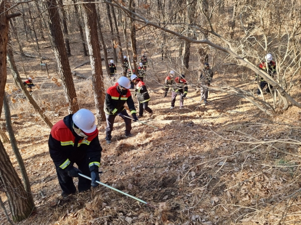 산불 예방과 진화 요령 산불 진화 안전 수칙 산불 진화 장비 실습 산불 신고 단말기·디지털 무전기 등 스마트 통신 장비 실습 등을 했다.