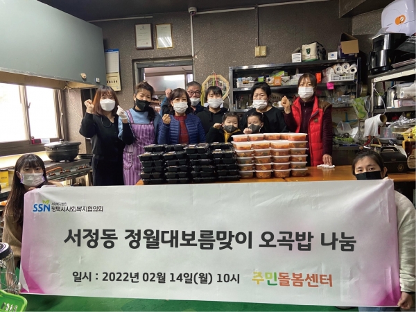 [충청뉴스큐] 평택시는 도시재생사업의 일환으로 추진하고 있는 서정동 새뜰마을 주민돌봄사업을 통해 지난 14일 ‘정월대보름 맞이 오곡밥 나눔’ 행사를 진행했다.