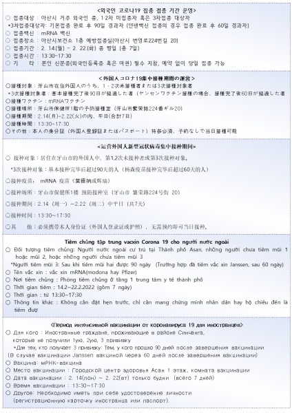 [충청뉴스큐] 아산시보건소는 오는 22일까지 외국인 예약 없이 당일 접종을 실시한다.