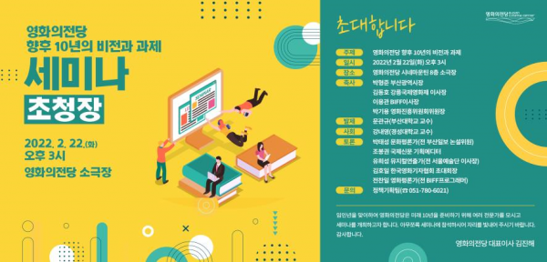 이번 세미나는 영화의전당 개관 11주년을 맞이해 지난 10년의 발자취를 돌아보고 향후 10년의 비전과 발전방안을 살펴보는 자리로 김진해 영화의전당 대표이사의 개회사 박형준 부산시장, 김동호 강릉국제영화제 이사장, 이용관 부산국제영화제 이사장, 박기용 영화진흥위원회 위원장의 축사 주제발표 종합토론 순으로 진행될 예정이다.