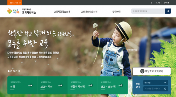 [충청뉴스큐] 강원도교육청은 22일 1학기부터 온라인으로 교외체험학습 신청-승인-결과보고서 제출이 가능한 ‘교외체험학습 온라인 시스템’을 운영한다고 밝혔다.