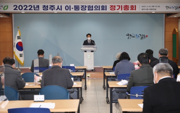 [충청뉴스큐] 청주시 이·통장협의회는 22일 시청 대회의실에서 각 읍·면·동 회장 40여명이 참석한 가운데 2022년 청주시 이·통장협의회 정기총회를 개최했다.