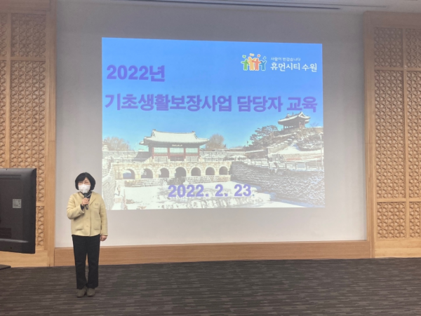 수원시는 23일 비대면 방식으로 ‘2022년 국민기초생활보장사업 담당자 교육’을 열고 구·동 담당 공무원 70여명에게 사업 내용을 알렸다.