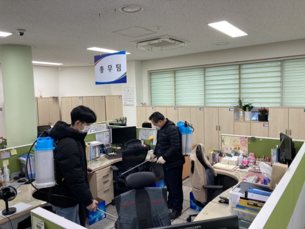 [충청뉴스큐] 천안시 신안동은 지난 23일 코로나19 오미크론 확산 방지를 위해 신안동 행정복지센터 청사 내부 자체 방역소독을 실시했다.