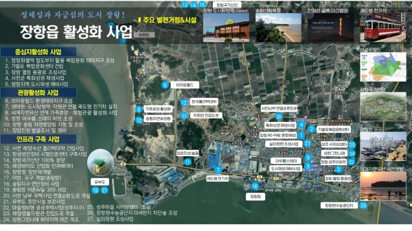 이에 서천군은 장항읍 공간의 체계적 발전을 위한 중심지 활성화, 사람이 찾아오게 하는 관광 활성화, 주민이 편의와 신성장을 도모하는 인프라 구축 을 중점 추진 방향으로 총 27개 사업에 7176억원의 예산을 투입해 추진하고 있다.