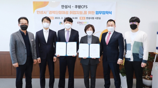 [충청뉴스큐] 안성시는 지난 23일 관내 기업인 쿠팡풀필먼트서비스와 안성시 경력단절여성 취업 지원을 위한 업무협약을 체결했다고 밝혔다.