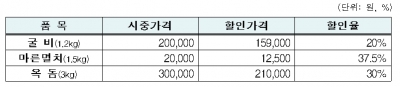 바다마트 특판행사는 16일부터 2월 4일까지 진행되며, 굴비, 옥돔 등 선물세트와 제수용 수산물 세트 10만 개를 15~30% 할인해 판매할 계획이다.