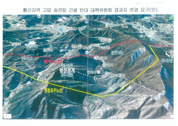 한국전력에 송전선로 노선 변경을 요구하는 공문과 노선 경과지 변경안도 발송한 상태이다.