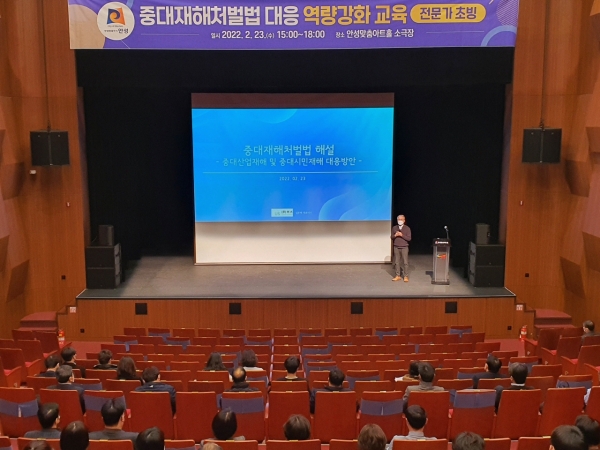 [충청뉴스큐] 안성시는 지난 23일 안성맞춤 아트홀에서 시장, 부시장 등 간부공무원과 사업담당공무원 등 100여명이 참석한 가운데 중대재해처벌법 역량강화 교육을 실시했다.