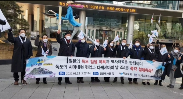 [충청뉴스큐] 경기도의회 교육행정위원회 유근식 의원은 지난 22일 일본대사관 앞에서 독도향우회 회원들과 함께 일본 정부의 독도 침탈 야욕을 규탄하는 결의대회를 개최했다고 밝혔다.