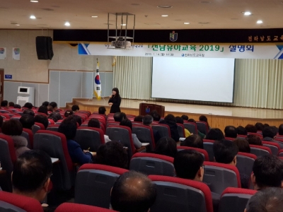 전라남도교육청은 14일과 오는 15일 이틀 동안 전남 중·서부권과 동부권으로 나누어 공립유치원 원감, 사립유치원 원장, 교육지원청 업무담당 장학사 등 537명을 대상으로 ‘전남유아교육 2019’ 설명회를 갖고 올 한 해 유치원 운영기본 방향을 밝혔다. 1차는 14일 오후2시 무안군 삼향읍 소재 전라남도교육연구정보원 합동강의실에서 열렸고, 2차는 15일 오후2시 순천시 소재 전라남도유아교육진흥원 대회의실에서 열린다.