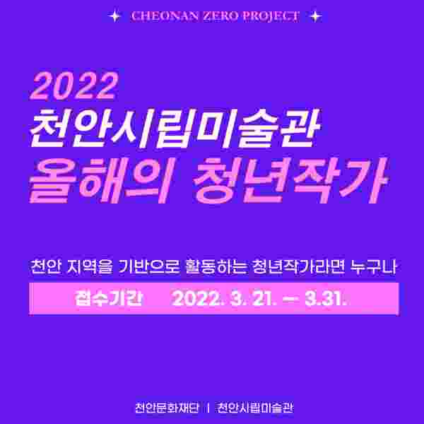 [충청뉴스큐] 천안문화재단 천안시립미술관은 3월 21일부터 31일까지 천안제로프로젝트‘2022 올해의 청년작가’전시 작가선정 공모를 진행한다.
