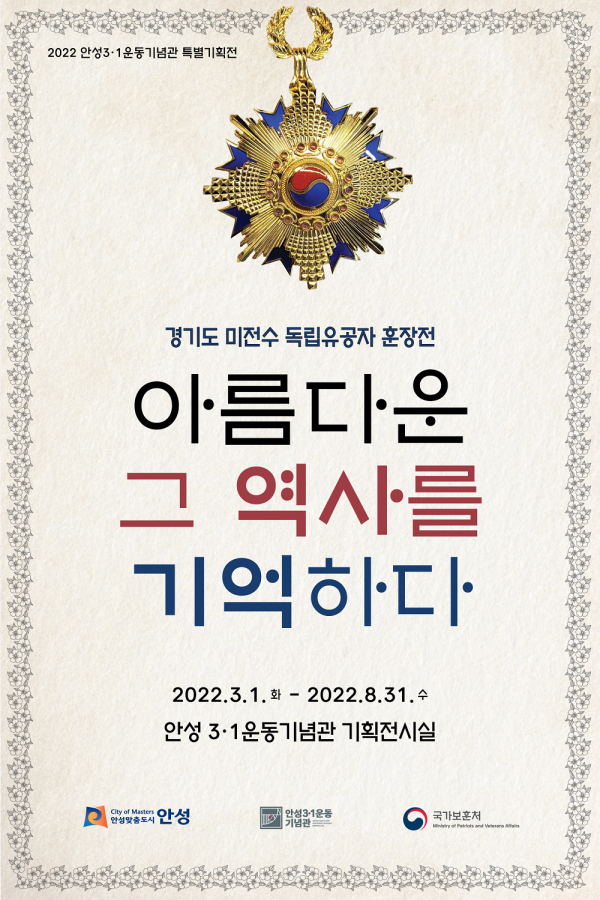 [충청뉴스큐] 안성3·1운동기념관이 오는 3월 1일부터 경기도 지역 미전수 독립유공자 건국훈장 기획전 ‘아름다운 그 역사를 기억하다’를 국가보훈처와 협업으로 개최한다.