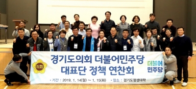 [충청뉴스큐] 경기도의회 더불어민주당은 14일부터 오는 15일 경기도평생대학에서 2018년 교섭단체 더불어민주당 사업의 성과 및 한계를 평가하고, 19년도 사업 및 정책방향을 모색하기 위해 "제10대 도의회 더불어민주당 대표단 정책 연찬회"를 개최했다.