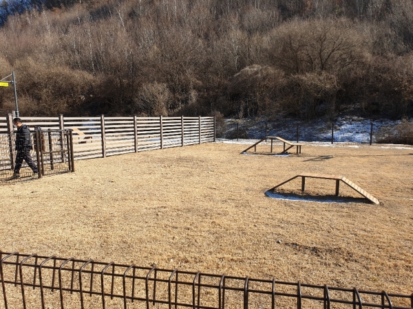 반려견 놀이터는 대형견과 중·소형견 놀이공간을 분리해 놀이시설을 설치했으며 안전사고 예방을 위해 CCTV는 물론이고 이중 출입문과 중·소형견 분리를 위한 목재 펜스도 설치했다.