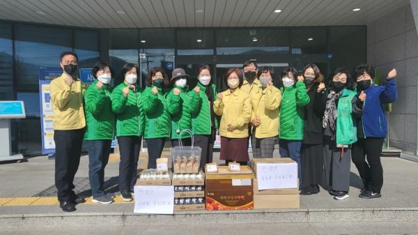 지난 2월 24일 새마을문고단양군지부는 단양군 보건소를 방문해 떡 130인분을 전달했고 3월 2일 단양군새마을부녀회은 빵과 음료 130개를 전달하며 감사의 마음을 함께 전했다.