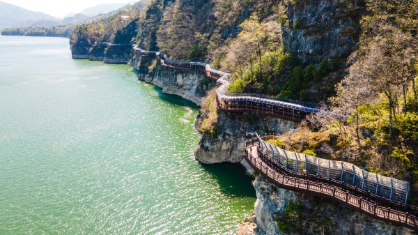 급격히 줄어든 신체활동으로 건강을 사수하기 위한 비대면 걷기 챌린지가 큰 호응을 얻는 요즘 단양강잔도 역시 비대면 안심관광지로 큰 인기를 얻고 있다.