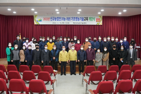 [충청뉴스큐] 예산군농업기술센터는 귀농·귀촌인들의 안정정착을 위한 ‘2022년 신규농업인 기초영농기술 교육’ 개강식 및 오리엔테이션을 지난 10일 성황리에 개최했다.