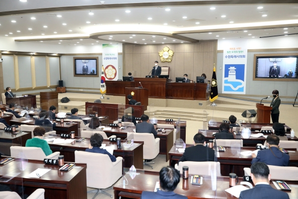 조석환 의장은 개회사를 통해“집행부가 6월 말까지 수원시장 권한대행 체제인데 시민들의 생활에 불편이 없도록 최선을 다해 주기 바란다”고 말했다.
