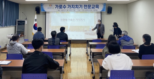 공원녹지 담당 공무원 등 30여명을 대상으로 한 이번 교육은 이승제 서울나무병원장의 ‘유형별 가로수 가지치기’와 이홍우 아보리스트의 ‘가로수 가지치기 현장 실습’ 등으로 운영됐다.
