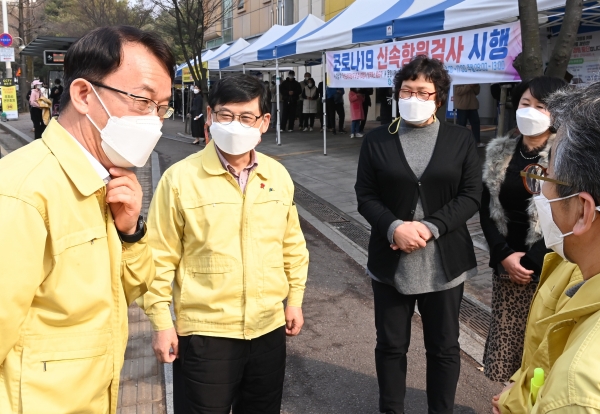 [충청뉴스큐] 조청식 수원시장 권한대행이 11일 코로나19 대응 부서 직원들을 격려하고 간식을 전달했다.