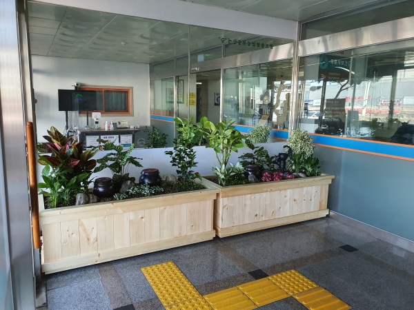 화단 위치 역시 주출입구에 설치해 보건소를 방문하는 사람 누구나 초록 식물을 보며 쉼과 휴식을 얻을 수 있도록 설계됐다.