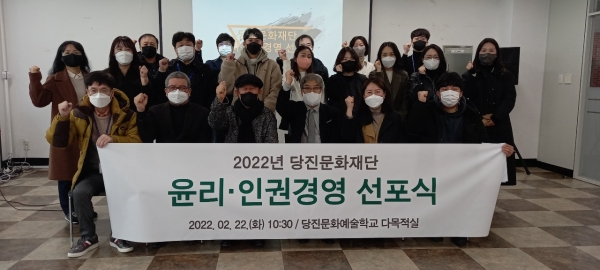 당진문화재단은 지난달 22일 ‘윤리·인권경영 선포식’을 갖고 2022년 주요 추진계획 중 하나로 '청렴윤리·인권경영 고도화'를 제시했다.