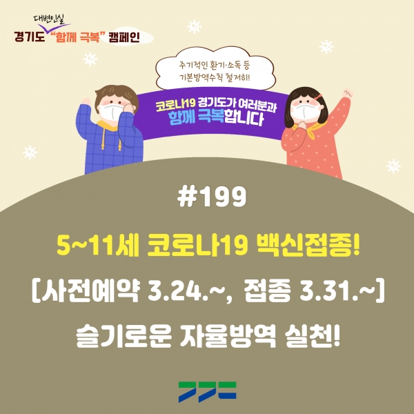이와 함께 정부가 소아·청소년 접종 계획을 발표한 것과 관련, 5~11세 소아 기초접종은 생일이 지나지 않은 2010년생부터 생일이 지난 2017년생까지가 해당되며 소아용 화이자 백신을 통해 도내 329개 지정 위탁의료기관에서 접종 가능하다.