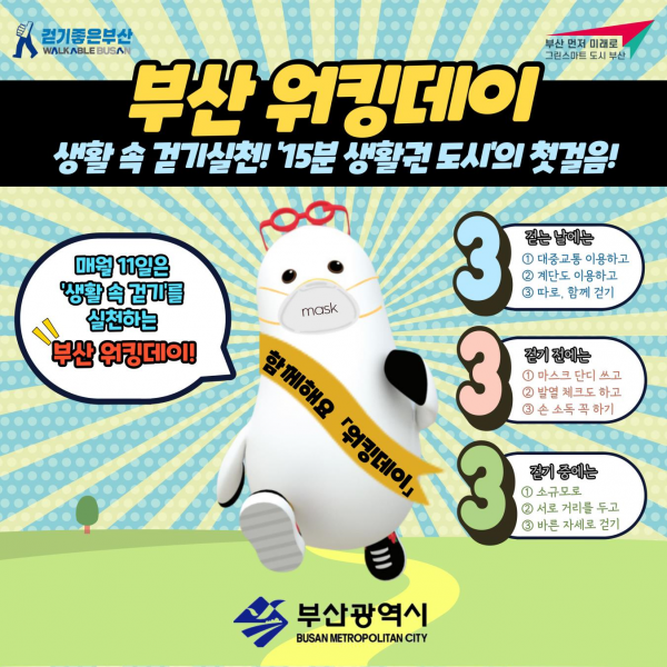 아울러 부산시는 캠페인과 함께 코로나 19 대응을 위해 ‘워킹데이 걷기수칙 3·3·3’도 집중홍보할 예정이다.