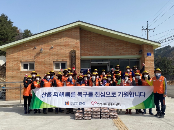 경기도 안성시는 지난 2020년, 기록적인 폭우로 수해 피해를 입었을 당시 전국에서 발 벗고 나서준 자원봉사자들의 도움을 받아 복구한바, 이번 강원도 강릉시 옥계면 산불 피해 현장 복구 지원은 그때의 도움의 손길을 갚고자 관내 자원봉사단체와 개인봉사자들의 자발적인 참여로 꾸려졌다.