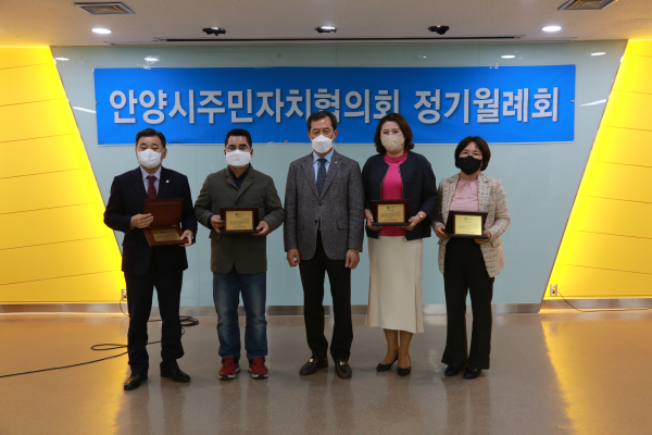 [충청뉴스큐] 안양시의회 총무경제위원회가 지난 15일 안양시주민자치협의회로부터 안양시 지역사회발전과 주민자치협의회 활성화에 기여한 공을 인정받아 공로패를 수여받았다.