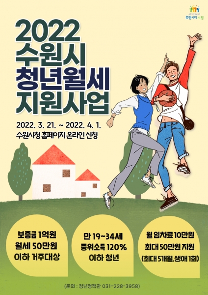 수원시 관계자는 “청년 월세 지원사업이 경제적으로 어려움을 겪는 청년층이 주거비 부담을 줄이는데 조금이나마 도움이 되길 바란다”고 말했다.