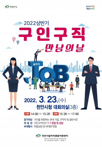 [충청뉴스큐] 천안시는 오는 23일 오후 2시부터 5시까지 시청 대회의실에서 ‘2022년 상반기 천안시 구인·구직 만남의 날’ 행사를 개최한다.