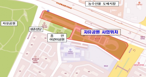 평촌신도시가 생기면서 조성된 자유공원 주민쉼터는 오랜 세월로 시설이 노후해 지고 이용에도 불편함이 있어, 환경개선이 요구되는 상황이었다.