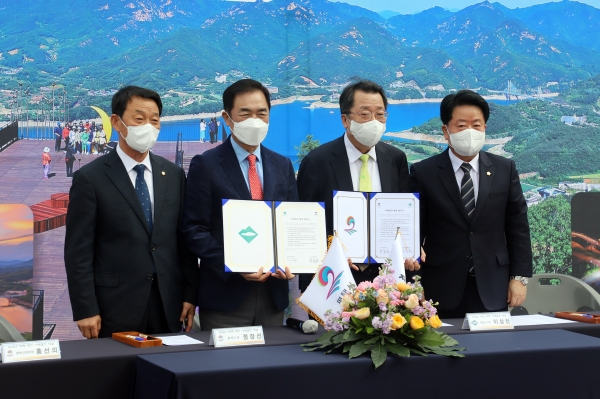[충청뉴스큐] 평택시의회 홍선의 의장은 17일 제천 청풍호반케이블카 옥상정원에서 열린 ‘평택-제천 자매결연 협약식’에 참석해 두 도시 간 교류협력을 적극 지원하겠다고 밝혔다.