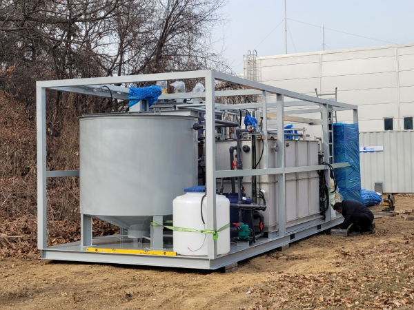 이는 소량의 전력과 약품만으로 미생물을 처리하는 동시에 색도를 함께 제거하는 간편한 기술이다.
