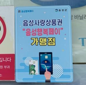 지원대상은 사업장소재지가 음성군이고 전년 음성행복페이 연매출액 3억원 이하 관내 소상공인으로 지원금액은 카드수수료 0.5%에 해당하는 금액이다.
