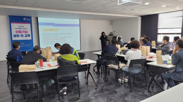 [충청뉴스큐] 대구시는 지역공동체에 기여하고 지속가능한 마을기업을 발굴·육성하기 위해 ‘2022년도 마을기업 설립 전 교육’을 마련하고 마을기업 설립을 희망하는 공동체와 법인을 대상으로 이달 31일까지 공개 모집한다.