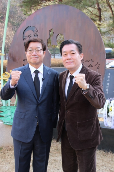 [충청뉴스큐] 이재준 수원시장 예비후보가 경기도지사 예비후보로 출사표를 던진 염태영 예비후보와 함께 수원 연화장에 위치한 노무현 전 대통령 기념비를 참배하고 다가오는 6.1 지방선거에서의 승리를 다짐했다.