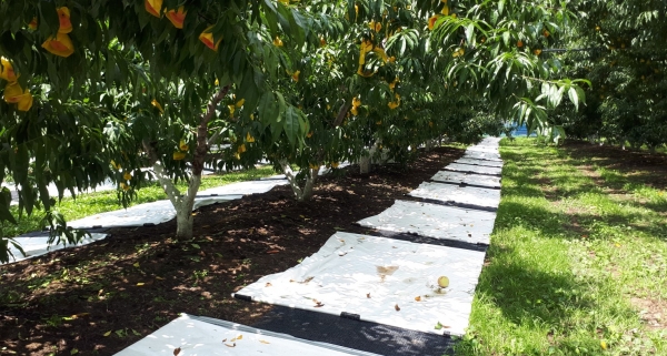옥천군이 복숭아 연합회원에 지원한 다기능 매트는 과일의 당도 형성시기인 수확 일주일 전에 방수와 반사지역할을 해 높은 당도와 색택을 좋게 하는 효과가 있다.